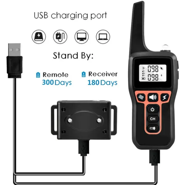 【USB Recharged Battery & Long Standby Time】: Both bark collar and remote can be fully charged in 2 hours. The max battery capacity of receiver is 650mAh and can work 30 days. The max battery capacity of remote is 300mAh and can work 60 days.