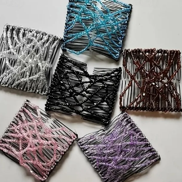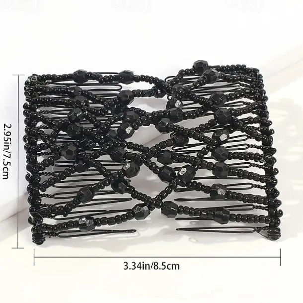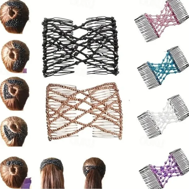 Double Hair Comb For Women, Hair Combs With Elastic Beaded Rope Flexible Hair Comb Magic Stretchy Hair Clip For Women Girls Hair Accessory