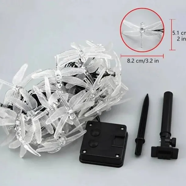Dragonfly Solar String Lights Outdoor 6.5M 30LEDs Waterproof Solar Fairy Lights 8 Modes Decorative Lights for Patio Garden Yard Fence Wedding Christmas Party Warm White RGB Multicolor