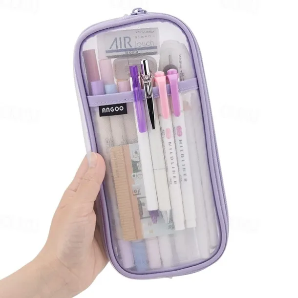 EASTHILL Grid Mesh Pen Pencil Case with Zipper Clear Makeup Color Pouch Cosmetics Bag Multi-Purpose Travel School Teen Girls Transparent Stationary Bag Office Organizer Box for Adluts(Pink)