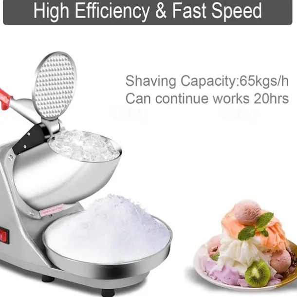 Electric Ice Crusher Crushed Ice Machine Snow Cone Maker with Stainless Steel Bowl Ice Shaver for Ice Cream, Cocktails, Cold Juice and Smoothies