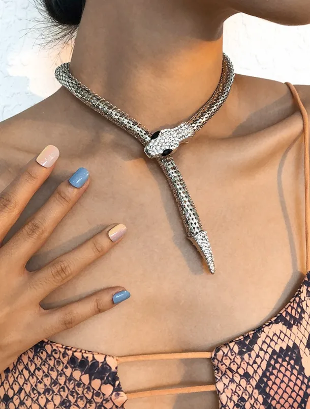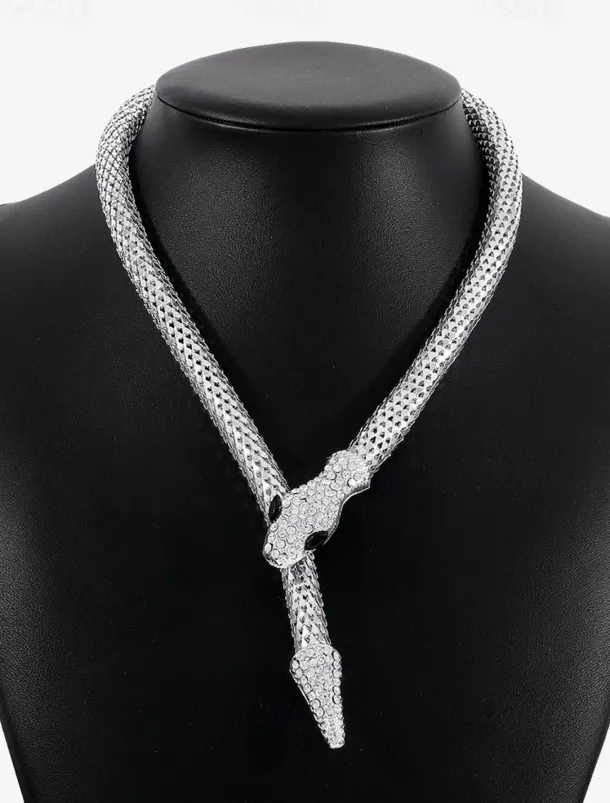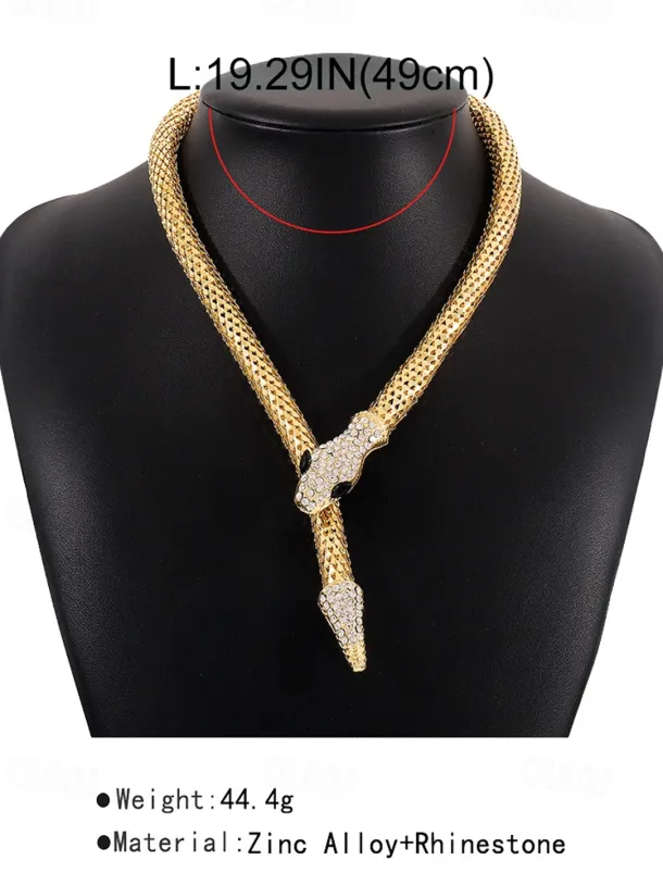 Elegant Gold Snake Necklace for Women – Rhinestone-Encrusted Statement Jewelry with Serpentine Design for Special Occasions and Parties