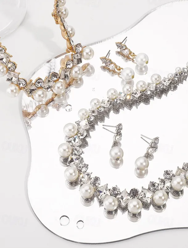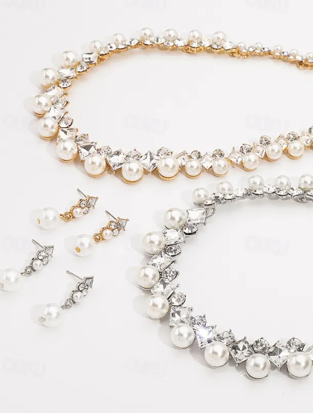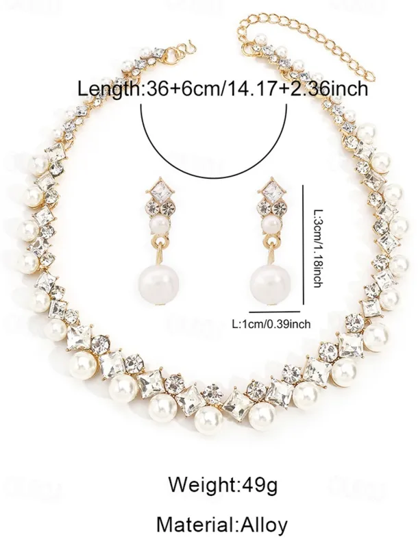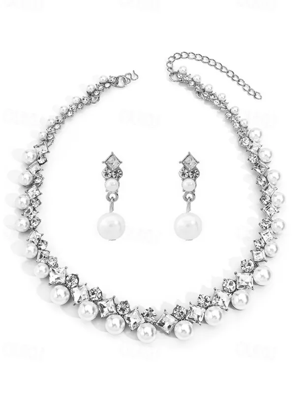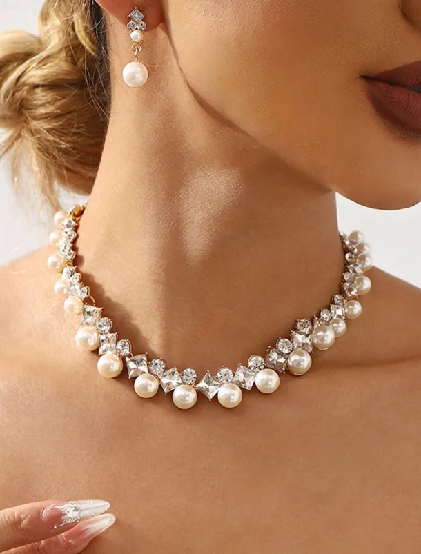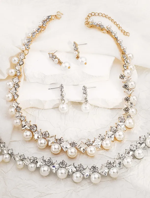 Elegant Pearl and Cubic Zirconia Necklace and Earrings Set with Cubic Zirconia Accents | Perfect for Weddings and Special Occasions