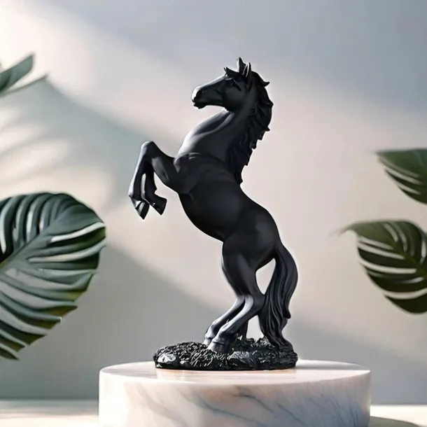 Elegant Resin Horse Statues, A Set of Three Majestic Horses in Black, White, and Golden, Perfect for Home Decor, Suitable for Entryways, Bar Carts, Living Rooms, and Offices