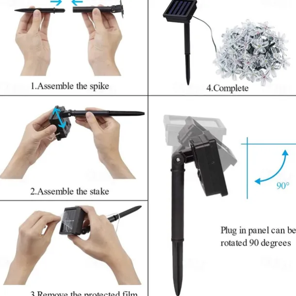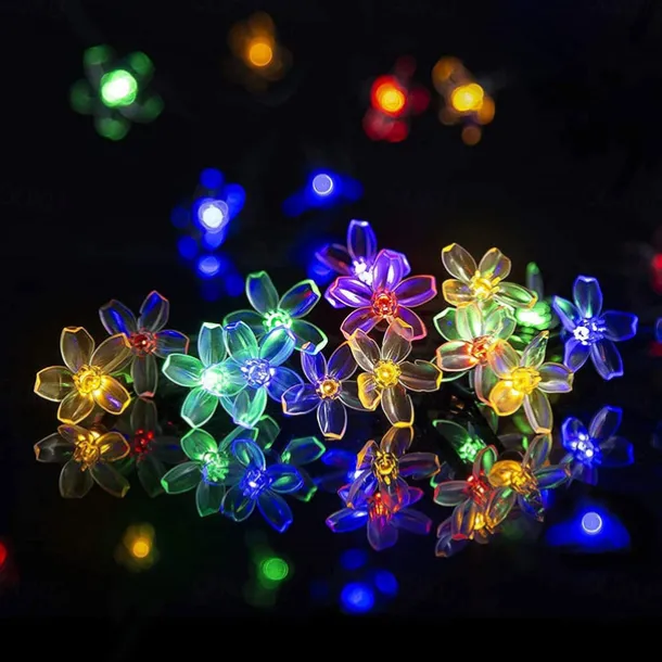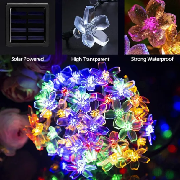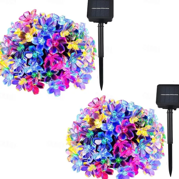 LED Beads Quantity: 7-50, 12-100, Light Color: Warm White, Blue, White, Multi Color, Power Supply: Solar Energy, Type: String Lights, Christmas Tree Lights, Style: Creative String Lights, Features: Waterproof, Quantity: 1 set, Voltage (V): Solar Powered, Length: 7m, 12m, Shape: Flower, Occasion: Outdoor, What’s in the box: 1Set Mounting Bracket,