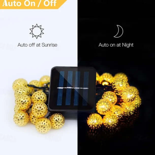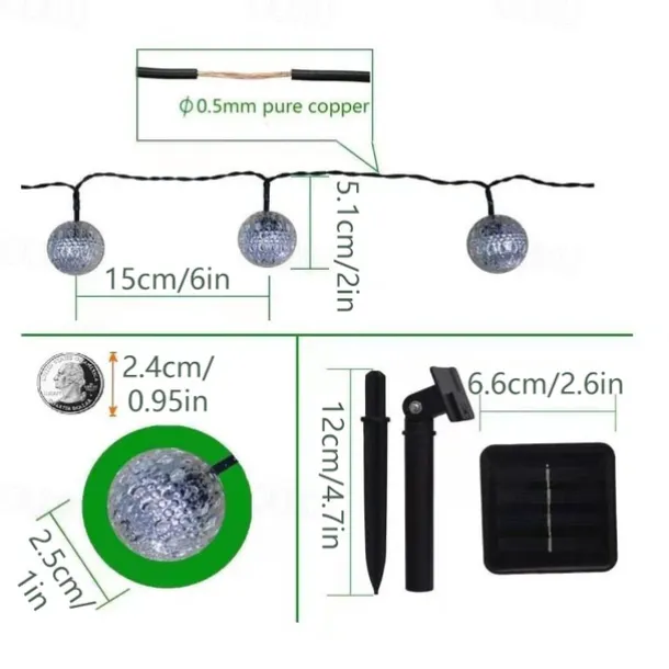 LED Beads Quantity: 20,30,50, Light Color: Warm White, RGB, Blue, White, Power Supply: Solar Energy, Type: String Lights, Style: Globe / Ball String Lights, Holiday Lights, Features: Waterproof, Outdoor, Holiday, Solar, Quantity: 1 set, Voltage (V): Solar Powered, Initial Lumens (lm): 3000, Length: 5m, 10m, 7m, Mode: 8 Modes: (1.Combination 2.Wave 3.Sequential 4.Glow 5.Flash 6.Slow Fade 7.Twinkle 8.Continuous), Control Mode: Mode Switching, Remote Control, Occasion: Outdoor,
