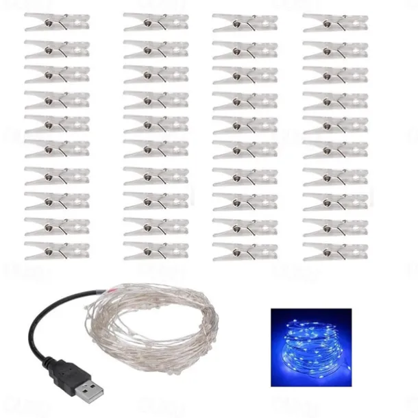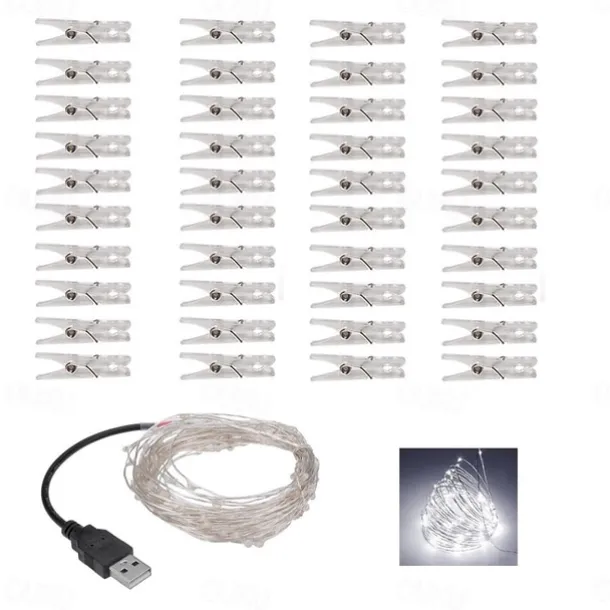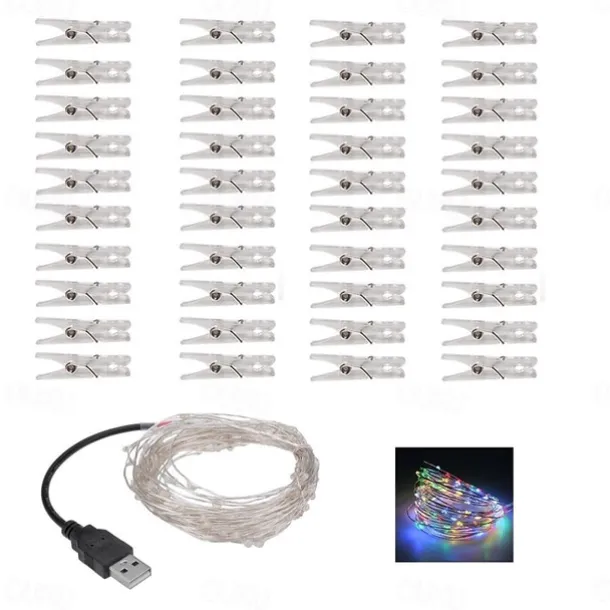 LED Beads Quantity: 50, Light Color: Warm White, Power Supply: USB, Type: Flexible LED Light Strips, String Lights, Style: Photo Clip LED String Lights, Features: Party, Christmas Wedding Decoration, Quantity: 1 set, Voltage (V): USB Powered, Initial Lumens (lm): 1, Length: 5m, Suitable Rooms: Bedroom, Dorm,