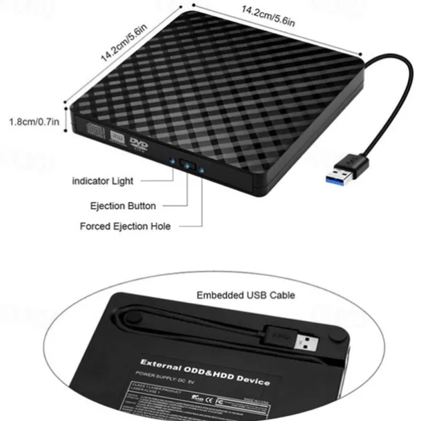 4. Plug and play: There is no need for any additional driver or external power source. Simply plug this DVD drive into your USB port, and it will be automatically detected by your device.