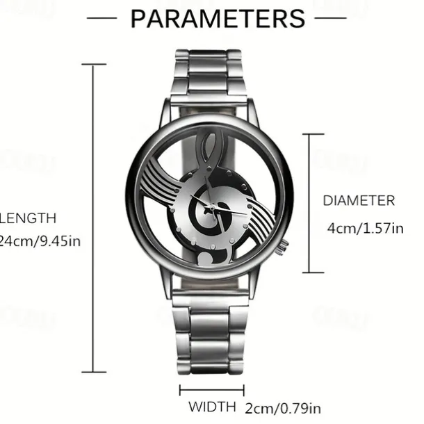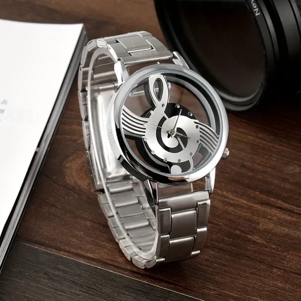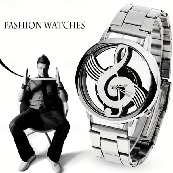 Fashion and Casual Music Note Notation Watch Stainless Steel Wristwatch for Men and Women Silver Watches
