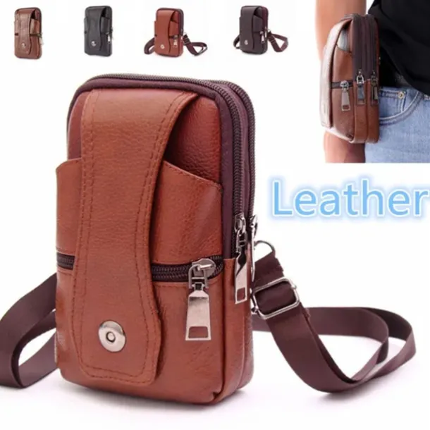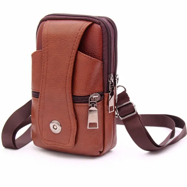 Fashion Men Leather Waist Bag Multifunction Fanny Pack Large Capacity Belt BagBrown Shoulder Bags Crossbody BagsMulti-layer buckle mobile phone bag