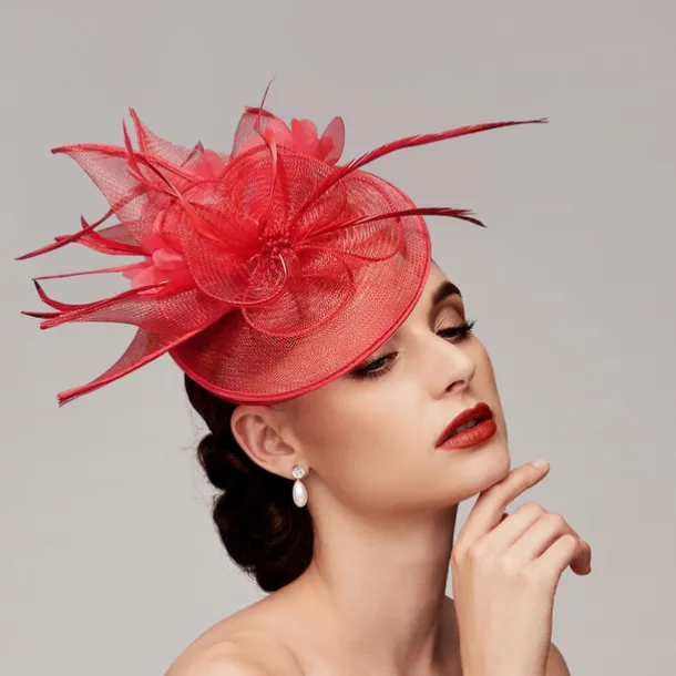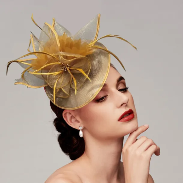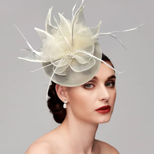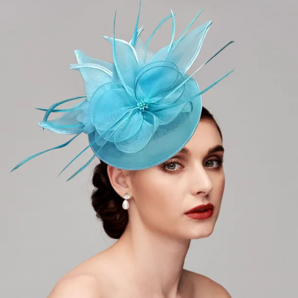 Feathers Net Fascinators Kentucky Hats Headpiece with Feather Cap Flower 1 PC Wedding Horse Race Ladies Day Melbourne Cup Headpiece dress to impress Race Day Dress