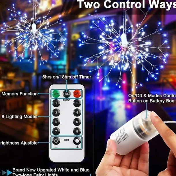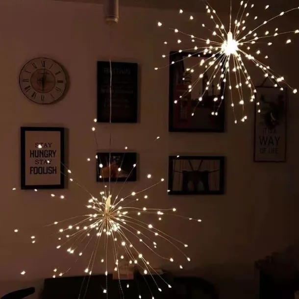 Firework Lights 150 LED Starburst Lights Copper Wire Lights 8 Modes Battery Operated Fairy Lights with Remote Warm White Hanging Christmas Lights for Party Patio Bedroom Decoration