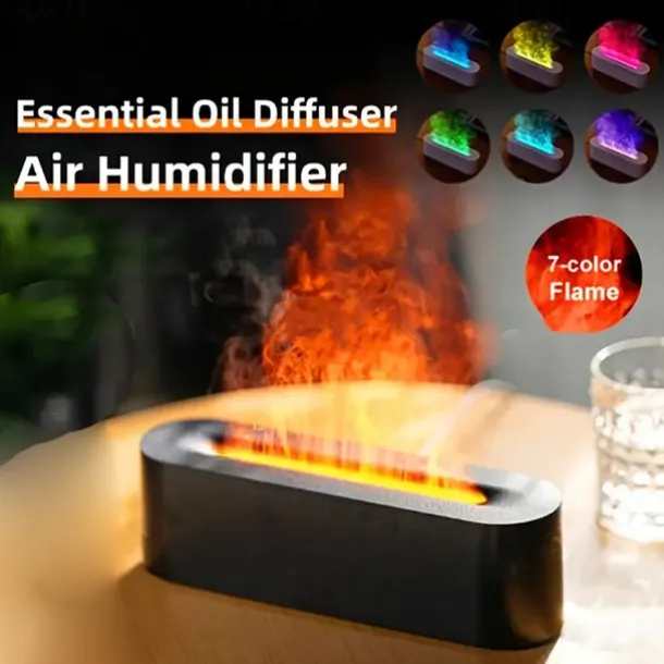 Flame Aroma Diffuser Air Humidifier Ultrasonic Cool Mist Maker Fogger Led Essential Oil Diffuser 7-color Flame Humidifier