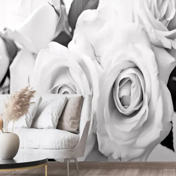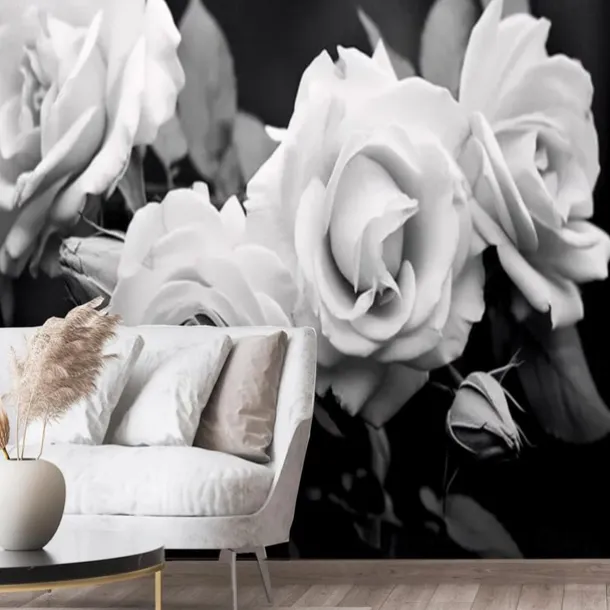 Flower 3D Wallpaper Black and White Home Decoration Wall Mural Roll Peel and Stick Removable PVC/Vinyl Material Self Adhesive/Adhesive Required Wall Decor for Living Room