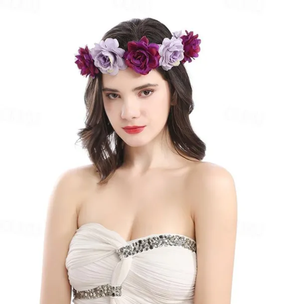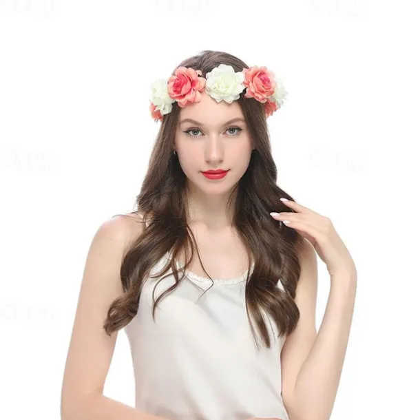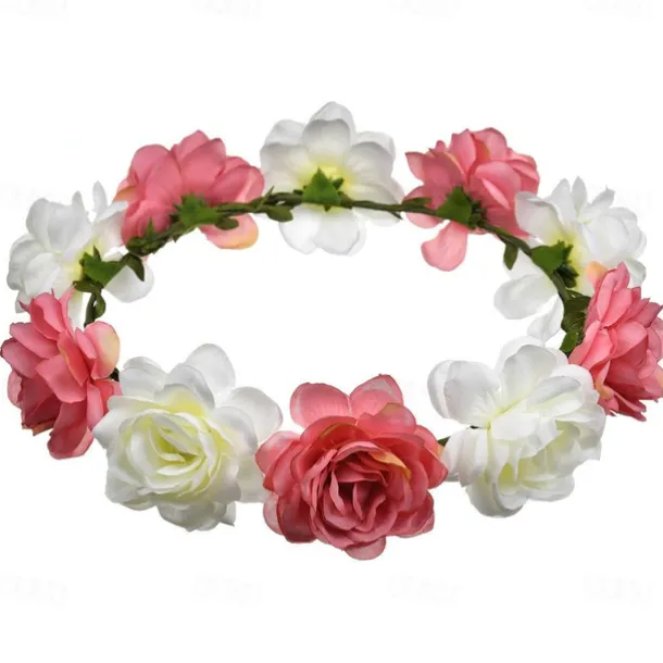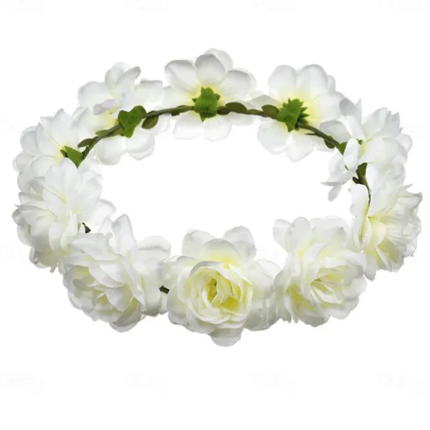 Flower Headband Rose Floral Boho Wreath Garland Hair Hoop Bohemian Headdress Headwear Headpiece Women Girls Crown Leaf Hair Bands Party Decoration Cosplay Costume Handmade Hair Accessories Champagne