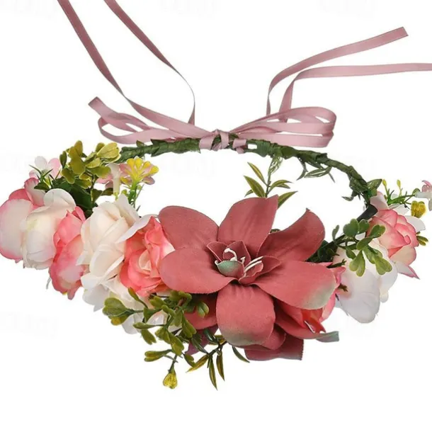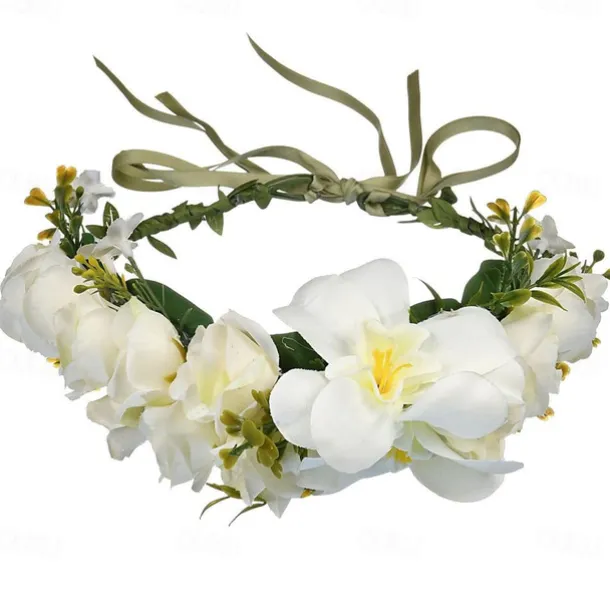 Flower Headband Rose Floral Boho Wreath Garland Hair Hoop Bohemian Headdress Headwear Headpiece Women Girls Crown Leaf Hair Bands Party Decoration Cosplay Costume Handmade Hair Accessories Champagne