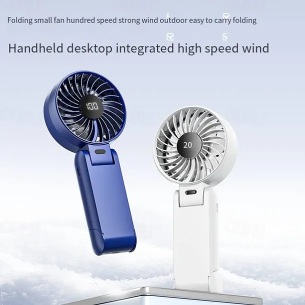 Foldable Handheld & Desktop Fan – 100-Speed Digital Display, 180° Adjustable, USB-C Rechargeable