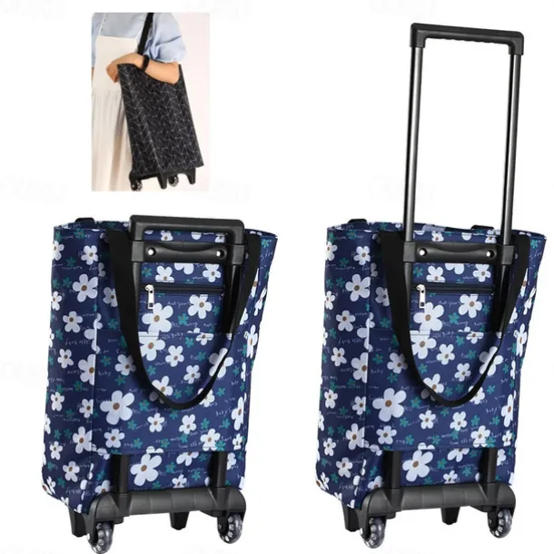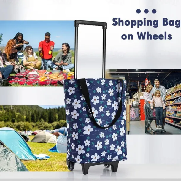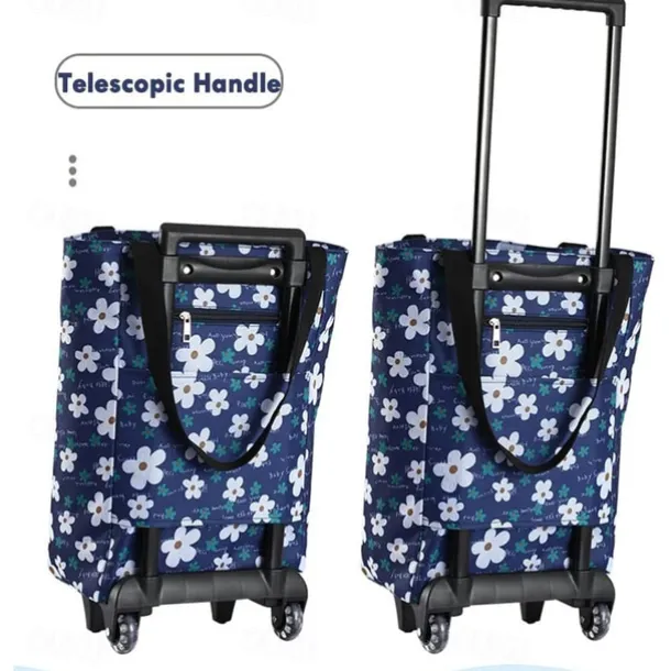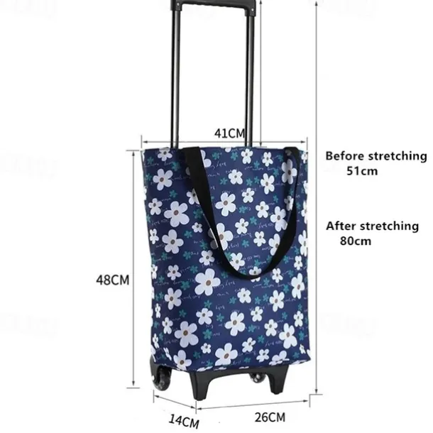 – Shopper with wheel: The bag features a telescopic handle and long strap design, allowing for easy switching between a shoulder bag and a shopping trolley. You can carry it on your shoulder, wear it, or hold it in your hand. Additionally, there is an anti-theft zipper pocket on the back to safely store valuables such as your phone, keys, or cards. No need to worry about losing or dropping them.