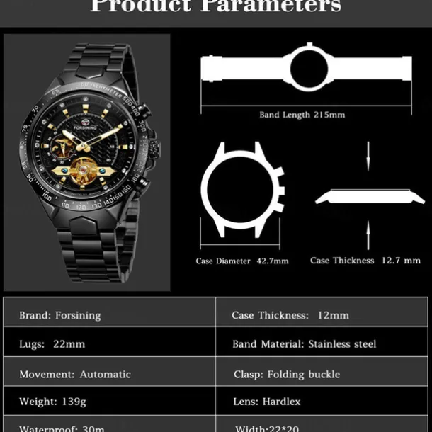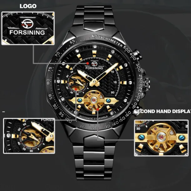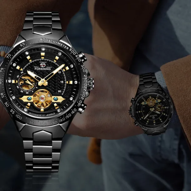 FORSINING Men Mechanical Watch Outdoor Sports Fashion Wristwatch Automatic Self-winding Luminous Waterproof Decoration Steel Watch