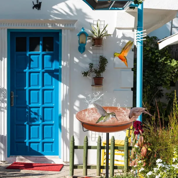 Freestanding Birdbaths Bowl Outdoor, Free Standing Garden Bird Bath Bird Feeder Bowl with Metal Stake, Detachable Decoration Spa Birdfeeder for Garden Patio Yard Lawn