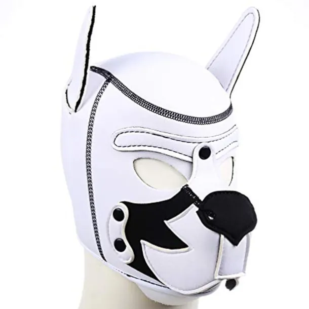 Full Face Mask Dog Puppy Hood White Helmet Removable Mouth Cosplay Costume Party Props (white)
