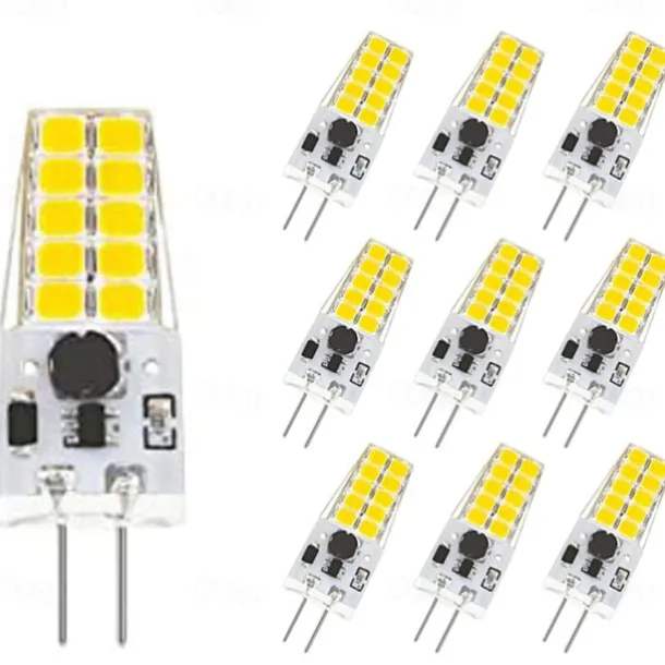 Quantity: 10pcs, LED Beads Quantity: 20, Light Color: Warm White, White, Type: LED Bi-pin Lights, Features: Dimmable, Wattage (W): 5, Voltage (V): 12-24, Initial Lumens (lm): 300, Color Temperature (k): 2700-3100/6000-6500, Lifetime (H): >25000, Beam Angle: 360°, CRI: >80, Primary Application: Home / Office, Living Room / Dining Room, Bedroom, Hallway / Stairwell, Bulb Shape: T, LED Type: SMD 2835, Bulb Base: G4, Dimension (cm): 37*13,