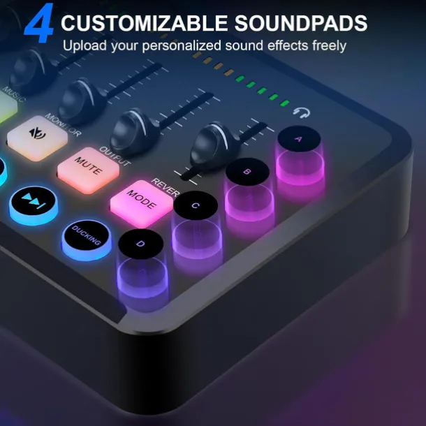 Gaming Audio Mixer Streaming 5-Channel RGB Mixer for Game Voice Podcast Live Broadcast