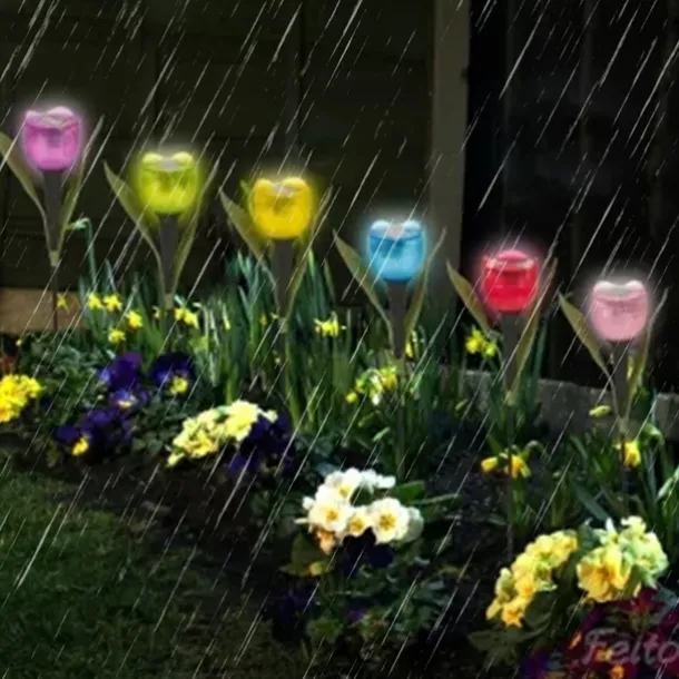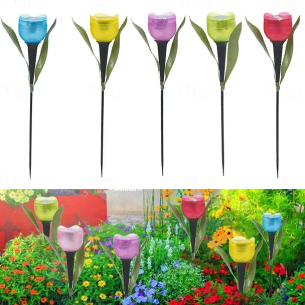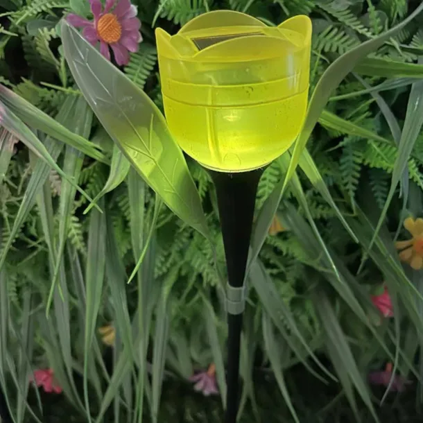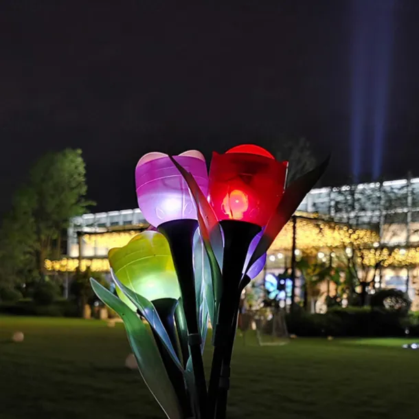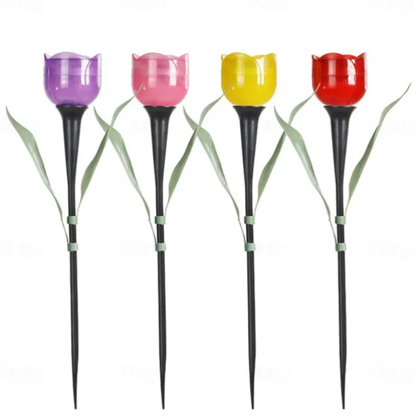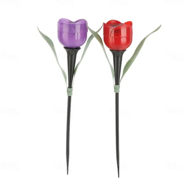 Garden Tulip Flower Shape Led Solar Powered Waterproof Tube Lawn Lights Decoration For Yard Outdoor Party Supplies
