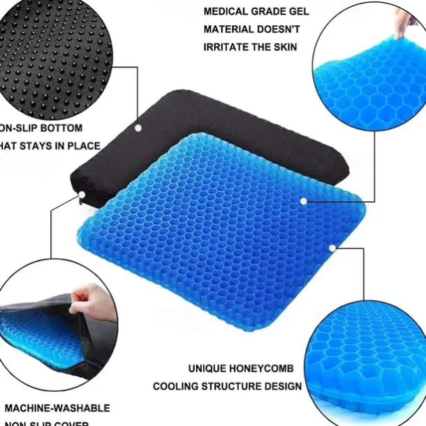 Gel Seat Cushion Pressure Relief Cushion Cooling Thick Big Breathable Honeycomb Gel Cushion Absorbs Pressure Points With Non-Slip Cover Wheelchair