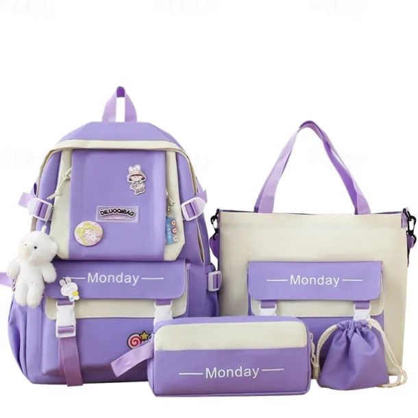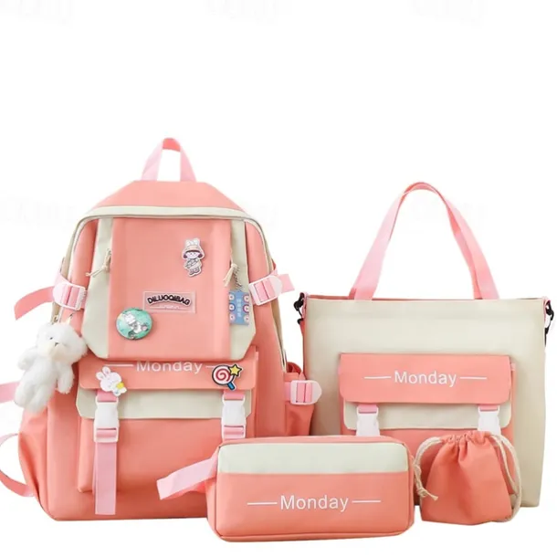 Girls 5-in-1 Green Backpack Set with Cute Accessories – Lightweight School Bag with Tote, Pencil Case and Drawstring Pouch for Teen Students and Daily Use