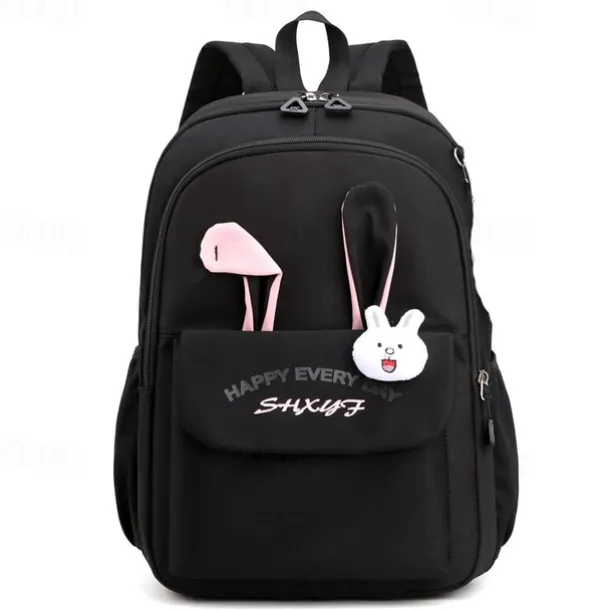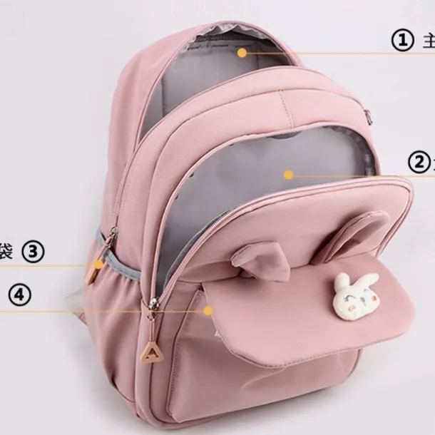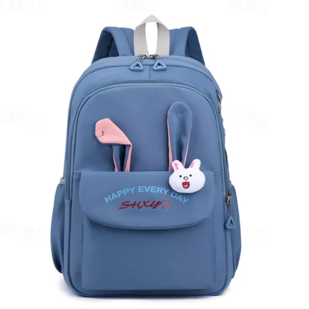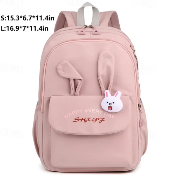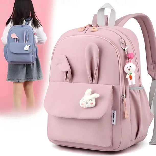 Girls Bunny Ear School Backpack with Cute Plush Keychain – Lightweight Waterproof Bookbag for Elementary and Middle School Students