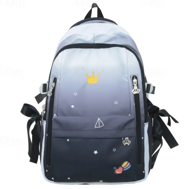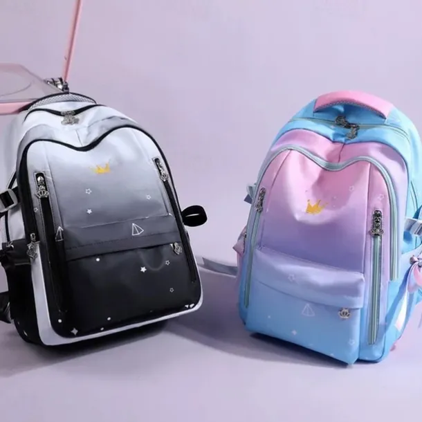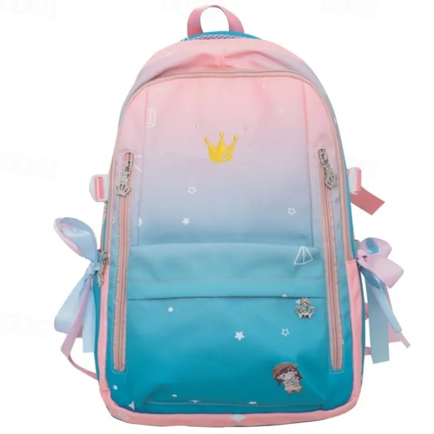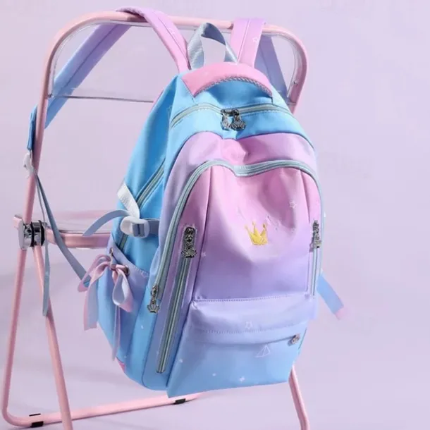 Girls Gradient Princess Backpack – Cute Waterproof School Bag with Crown Zippers and Star Print, Lightweight Bookbag for Elementary and Middle School