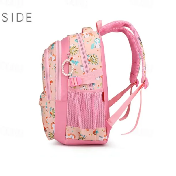 Girls’ Pink Cartoon Backpack – Waterproof School Bag with Unicorn and Animal Print for Kindergarten and Elementary Kids