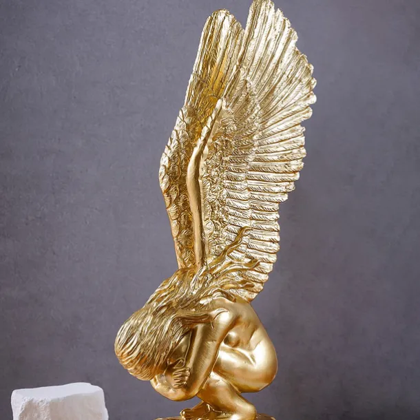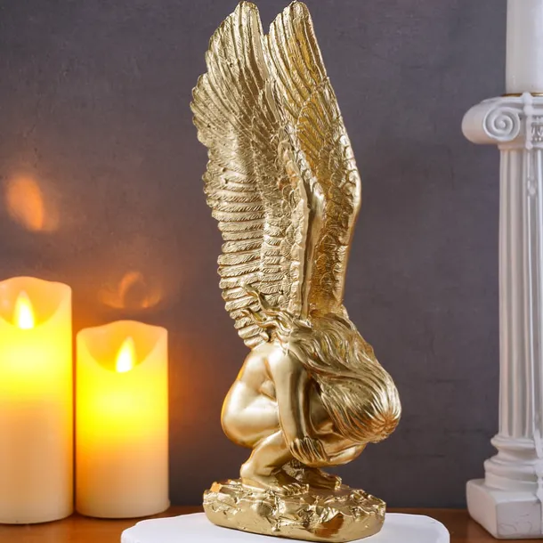 Gold Kneeling Angel Desktop Decoration, Resin Material Salvation Angel Sculpture, Handmade Craft for TV Background Wall, Entryway, Study, and Office Desk Decor