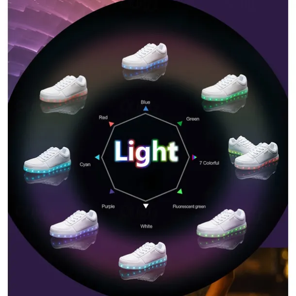 1. Sports LED Shoes with 7 single colors glow and 4 flashing models, making your feet the brightest star in the dark.