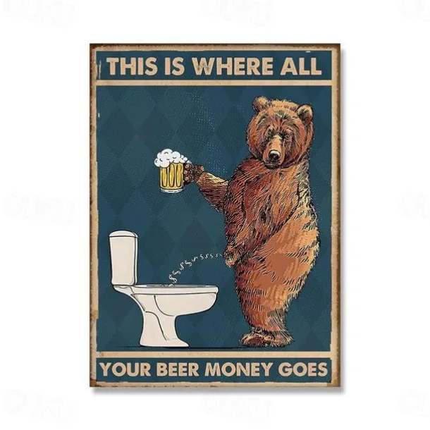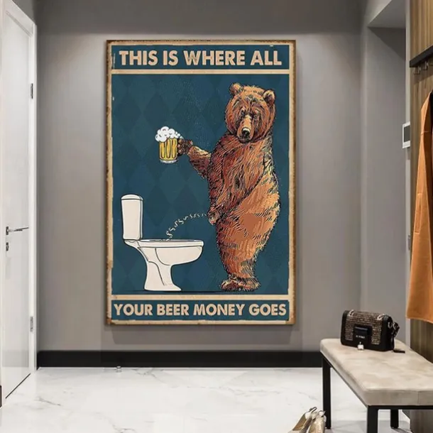 Grumpy Bear Drinking Beer Prints Poster Abstract Wall Art Canvas Modern Canvas Painting Print Picture Bathroom Toilet Nordic Home Decor Frameless