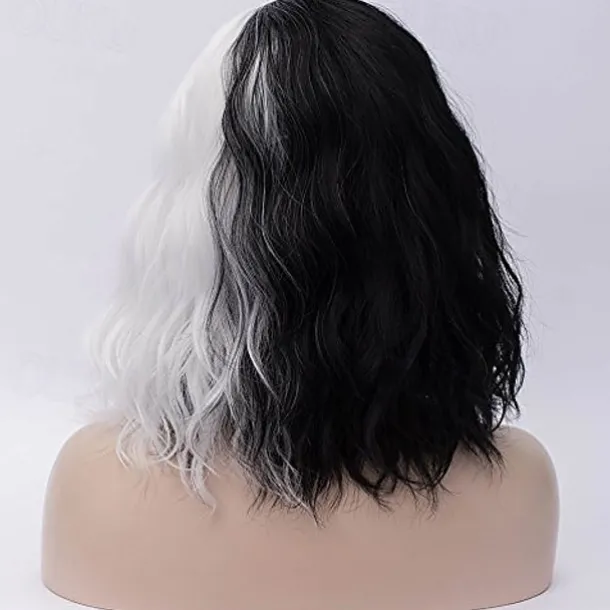 Half White and Half Black Wigs Cruella Deville Wig Split Color Synthetic Hair Wig Shoulder Length Wig Halloween Wigs