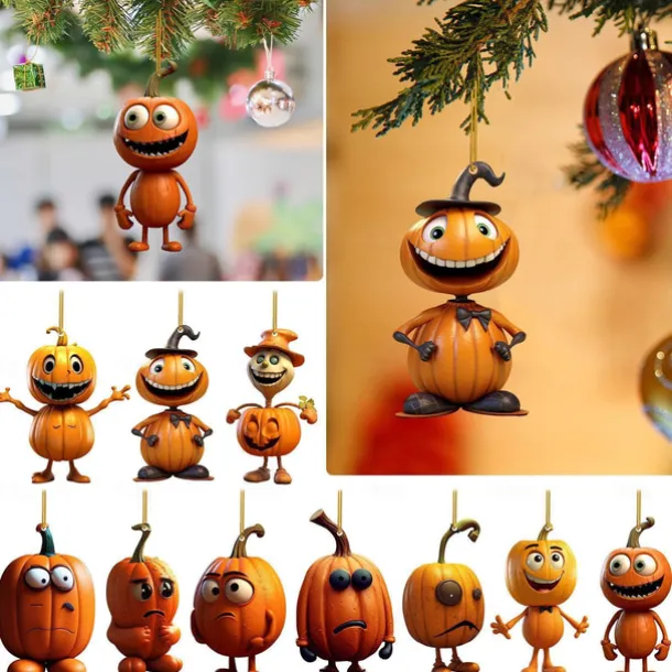Halloween Acrylic Pumpkin Car Pendant, Rearview Mirror Pendant, Ghost Pumpkin Pendant Home Decor