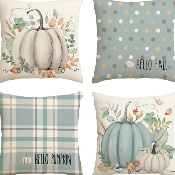 Halloween Autumn Harvest Double Side Pillow Cover 4PC Soft Decorative Square Cushion Case Pillowcase for Bedroom Livingroom Sofa Couch Chair Pumpkin