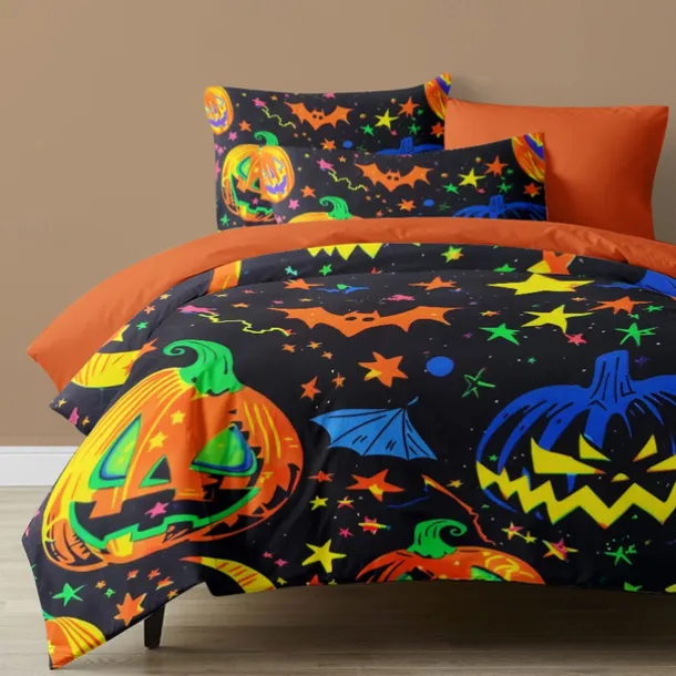 Halloween Collection Duvet Cover Set 3 Piece Set Jack O Lantern Pumpkin Super Soft Skin-friendly Long-lasting