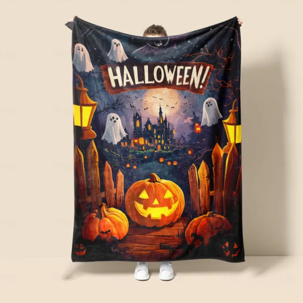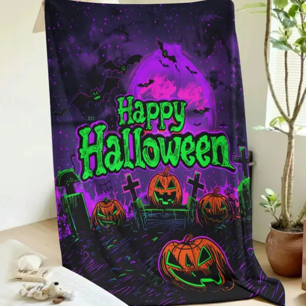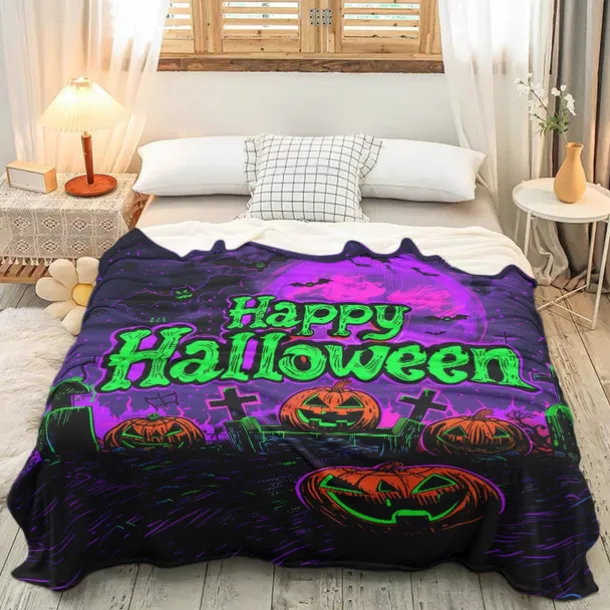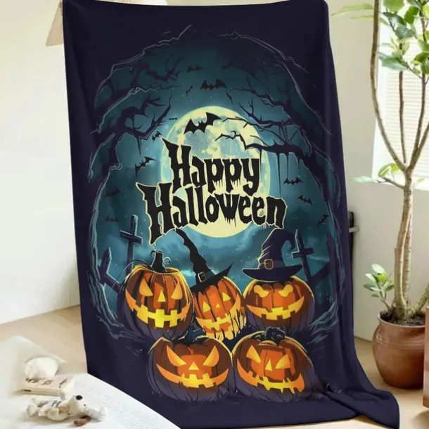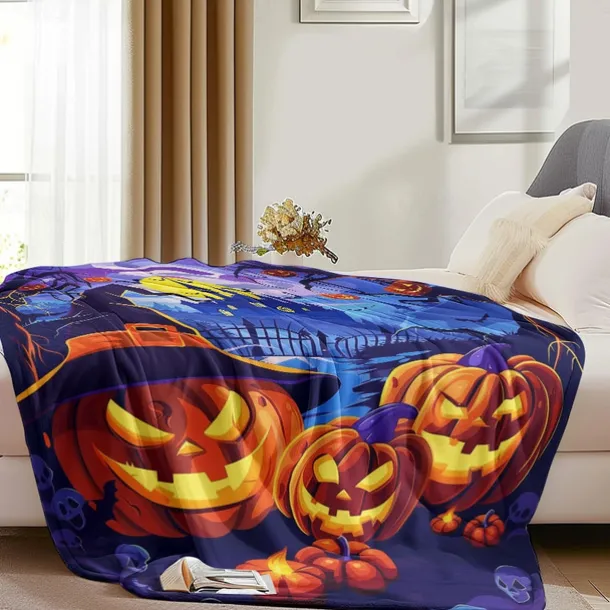 Halloween Decoration Jack O’ Lantern Pumpkin Throw Blanket – Soft and Cozy Fleece with Festive Pumpkin Design – Perfect for Halloween Decor and Keeping Warm