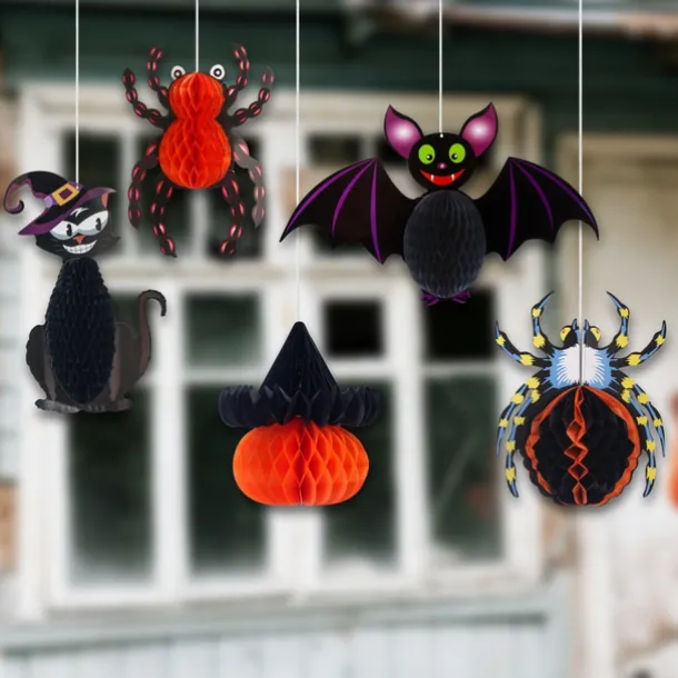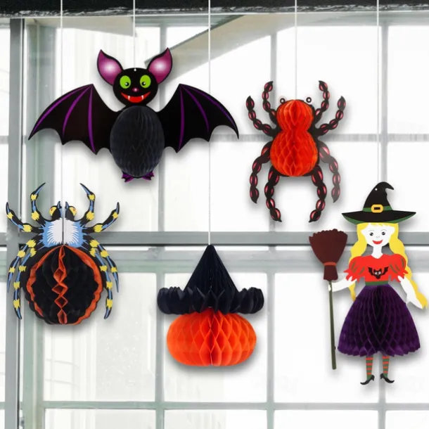 Halloween Decorations Pumpkin Spider Cat Honeycomb Ball Charm Paper Easy to Install