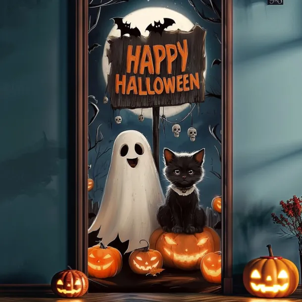 Halloween Door Cover – Flying Witch Silhouette with BOO Sign, Haunted House Entrance Banner, Scary Outdoor & Indoor Decoration for 2025 Halloween Bedroom, Living Room, Bathroom