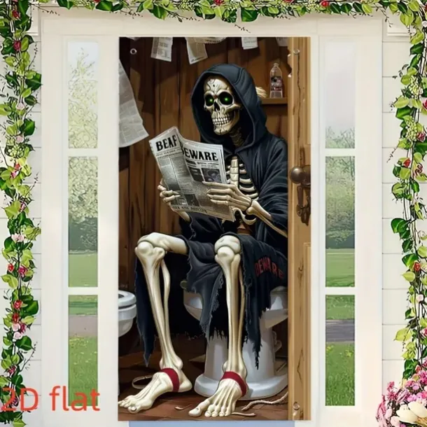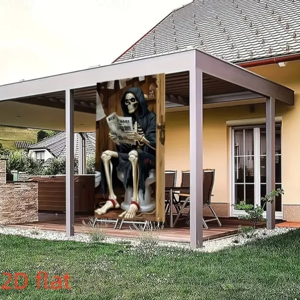Halloween Door Cover Outdoor Banners Skeleton Grim Reaper Funny Psychedelic Party Outdoor Shooting Backgrounds Front Door Wall Porch Decorations Wall Door Background