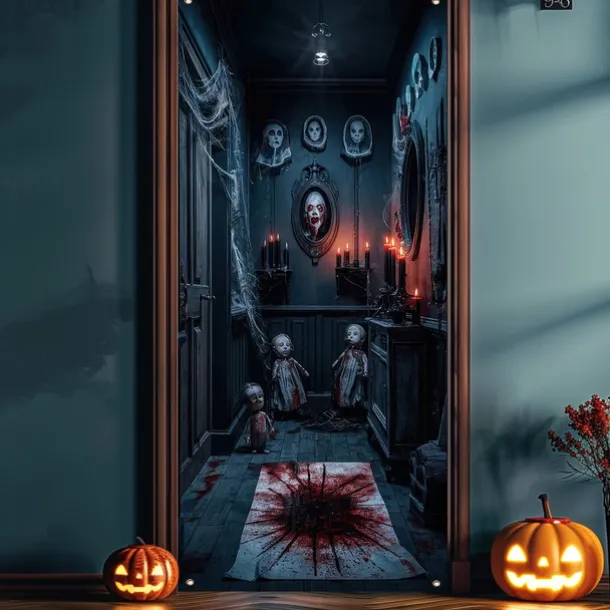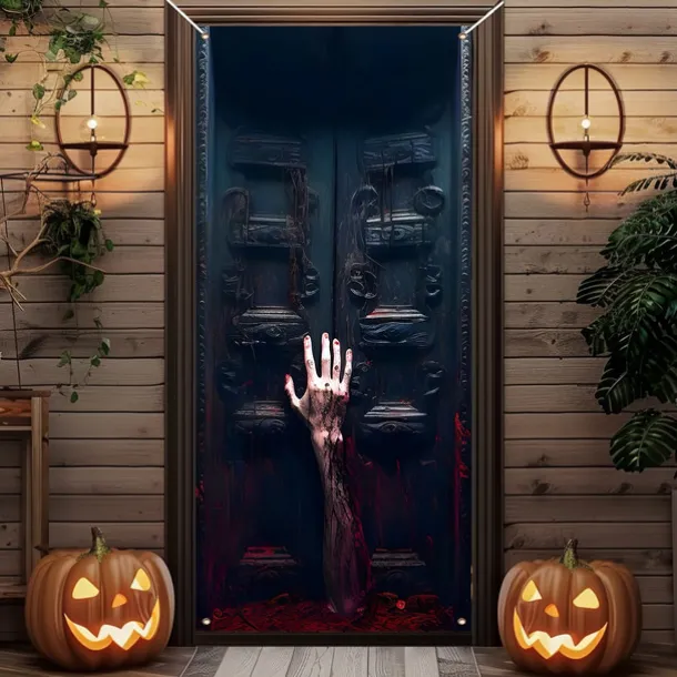 Halloween Door Cover Outdoor Banners Zombies 3D Psychedelic Party Outdoor Shooting Backgrounds Front Door Wall Porch Decorations Wall Door Background