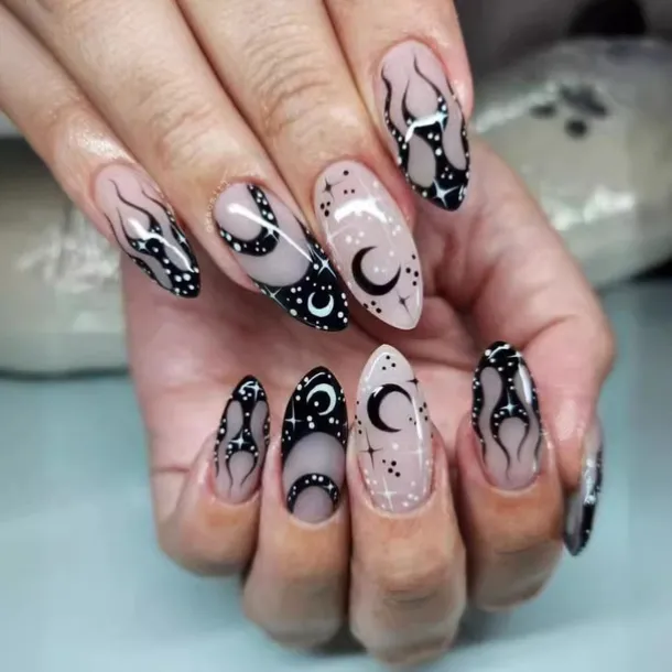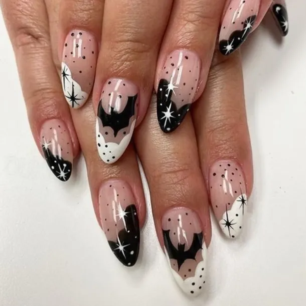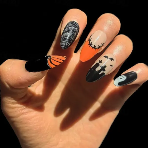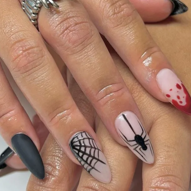 | Color | 1 Gradient Spider Web, 13 Blood Drops on Fingertips, 17 Ghost French, 20 Black & White Ghost, 21 Dark Night Flame, 3 Dark Bat, 5 cute grid ghosts, 9 Bats in the Dark |