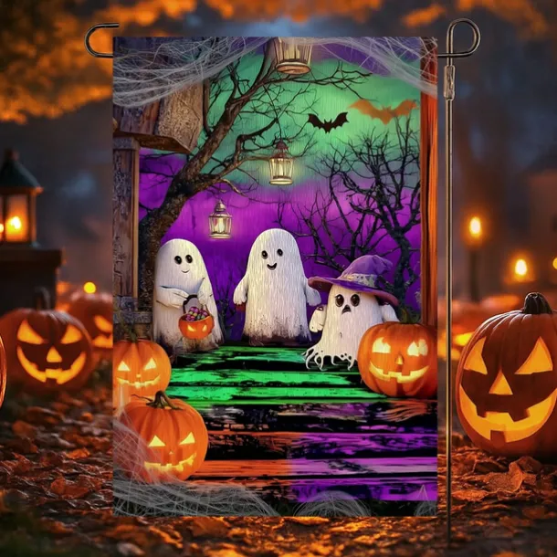 Halloween Garden Flag Banner – Neon-Style “Welcome” Witch with Spiral, Double-Sided Weather-Resistant Yard Flag for 2025 Halloween Holiday Outdoor Lawn, Porch Decoration