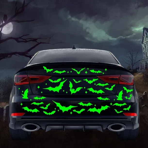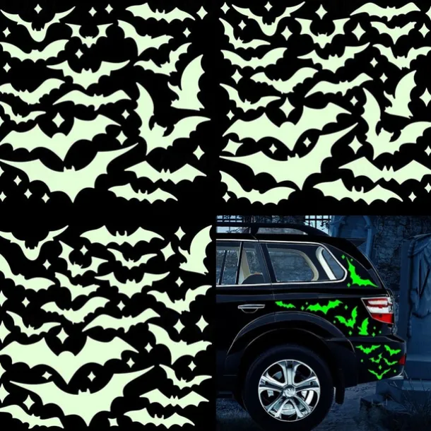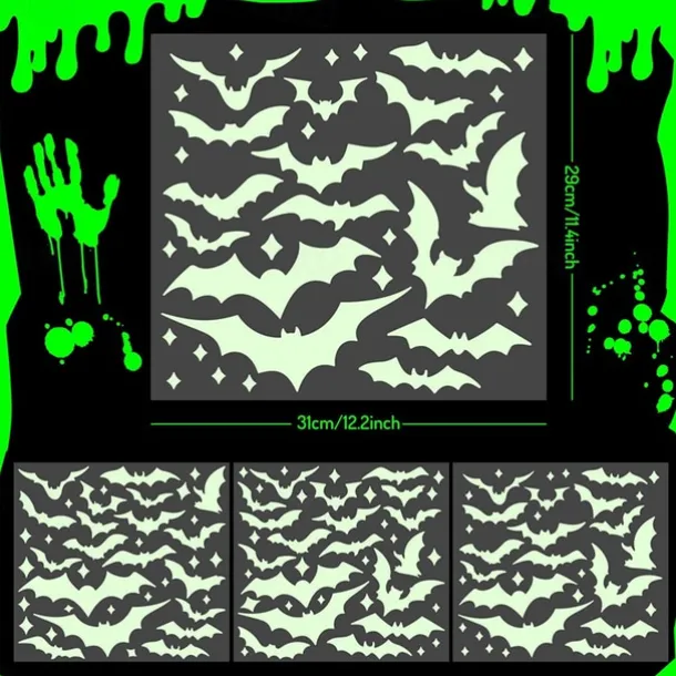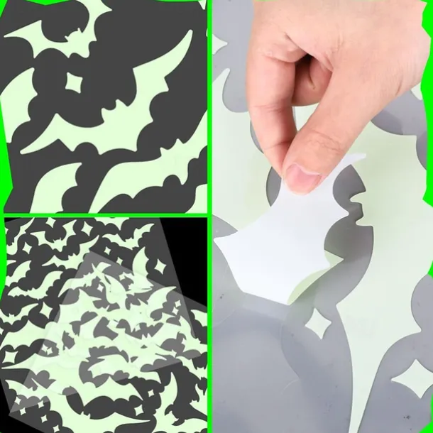 Halloween Glow-in-the-Dark Green Bat PET Stickers Bat Shape Elements
