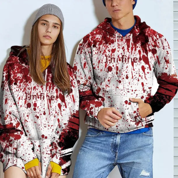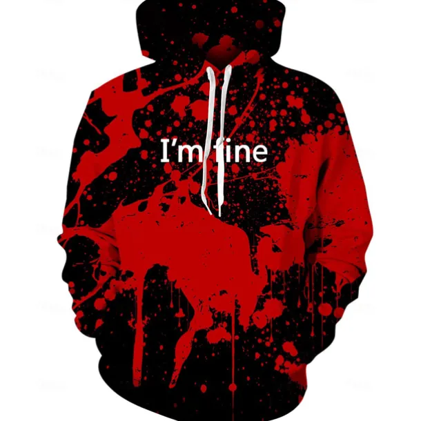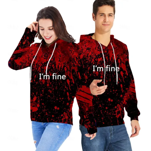 Halloween Hoodie I’m Fine Hoodies for Men Women 3D Print Graphic Sweatshirts Pullover Cool Funny Novelty Hoody Hooded With Pockets