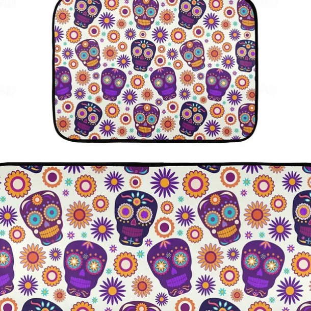 Halloween Kitchen Mats, 2PCS Kitchen Rugs, Cushioned Anti Fatigue Kitchen Mats for Floor, Non-Slip Standing Desk Mat, Waterproof Kitchen Rug Set for Kitchen, Floor, Office